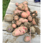 Die Kartoffelernte war besonders spannend, denn es gab drei verschiedene Sorten und manch lustige Form. Hier seht ihr sie frisch ausgebuddelt, geschält, gekocht und als Bratkartoffeln. Hups, da hat sich ja ein Kohlrabi dazwischen gemogelt.