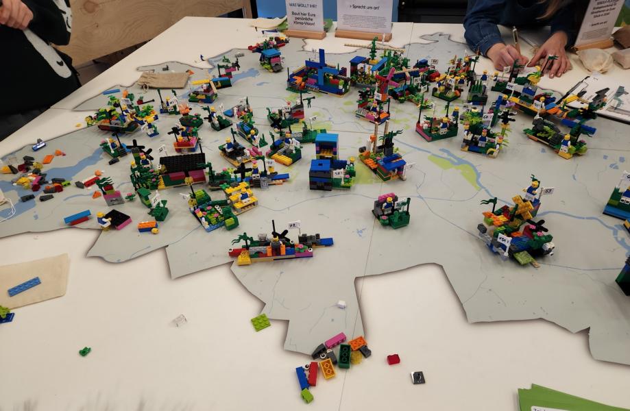 Mit Lego bauten wir, wie man die Umwelt verbessern kann, z.B. mit klimafreundlichen Maschinen.