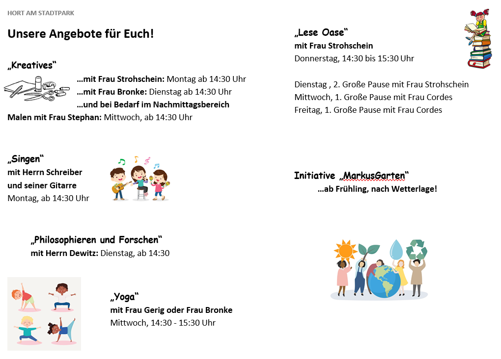 Wir unterstützen sie dabei mit vielfältigen Angeboten, eigenen Arbeitsgruppen und einem monatlichen Hortgottesdienst in Kooperation mit der Markusgemeinde.